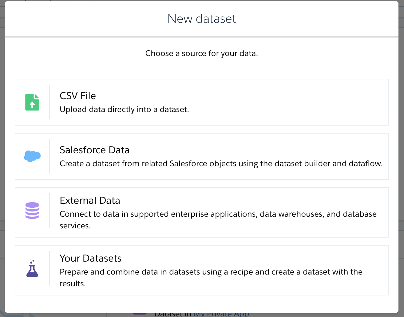 Give your dataset a descriptive name and assign it to one of your apps.